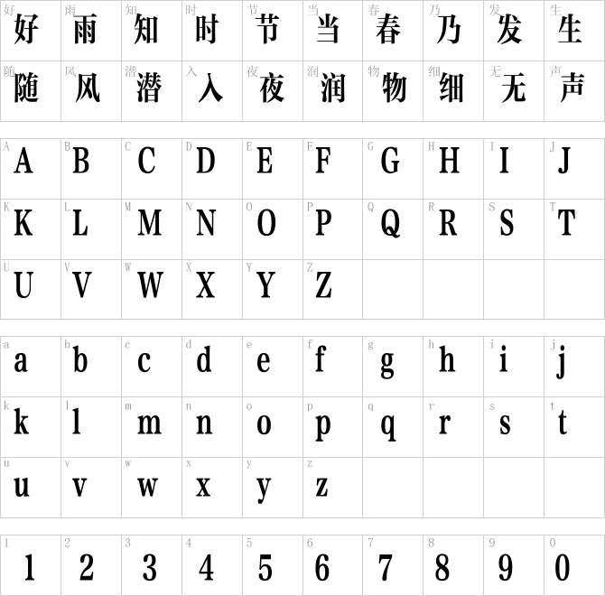 方正粗雅宋长_GBK.ttf是由字体厂商(设计师)方正出品的一款字体.方正字库隶属于北京北大方正电子有限公司(简称方正电子)。方正电子是专业从事中文字库开发的厂商,现拥有各种中、西文以及多民族文种字库数百款。作为享誉全球的方正中文电子出版系统的重要组成部分,方正字库一向以字款丰富,品质精良,适用面广,能迅速满足客户需求而在专业出版、印刷领域中享有盛誉。方正电子一向以推动中文字库技术进步,促进中文印刷字体的发展为己任,每年推出的创新字体都在十款以上。同时,方正电子还积极参与中国国家标准和国际ISO组织相关标准的制订,如GBK、GB18030、ISO/IEC-10646等。方正字库字款丰富、字形美观、性能稳定、适应面广,运行速度快,且存贮容量小。全面支持GB、GBK、GB18030、BIG-5以及JIS、KSC等编码体系,可以提供TrueType,PostScript Type1、Type0、CID等各种通用格式字库。方正字库官网http://www.foundertype.com/index.php/FindFont/index.html?utm_source=zitixiazai