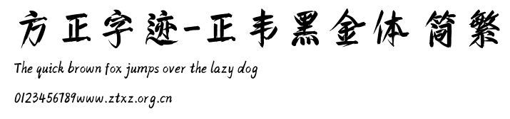 方正字迹-正韦黑金体 简繁.TTF是由字体厂商(设计师)方正出品的一款字体.方正字库隶属于北京北大方正电子有限公司(简称方正电子)。方正电子是专业从事中文字库开发的厂商,现拥有各种中、西文以及多民族文种字库数百款。作为享誉全球的方正中文电子出版系统的重要组成部分,方正字库一向以字款丰富,品质精良,适用面广,能迅速满足客户需求而在专业出版、印刷领域中享有盛誉。方正电子一向以推动中文字库技术进步,促进中文印刷字体的发展为己任,每年推出的创新字体都在十款以上。同时,方正电子还积极参与中国国家标准和国际ISO组织相关标准的制订,如GBK、GB18030、ISO/IEC-10646等。方正字库字款丰富、字形美观、性能稳定、适应面广,运行速度快,且存贮容量小。全面支持GB、GBK、GB18030、BIG-5以及JIS、KSC等编码体系,可以提供TrueType,PostScript Type1、Type0、CID等各种通用格式字库。方正字库官网http://www.foundertype.com/index.php/FindFont/index.html?utm_source=zitixiazai