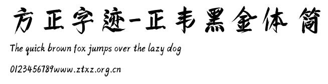 方正字迹-正韦黑金体 简.TTF是由字体厂商(设计师)方正出品的一款字体.方正字库隶属于北京北大方正电子有限公司(简称方正电子)。方正电子是专业从事中文字库开发的厂商,现拥有各种中、西文以及多民族文种字库数百款。作为享誉全球的方正中文电子出版系统的重要组成部分,方正字库一向以字款丰富,品质精良,适用面广,能迅速满足客户需求而在专业出版、印刷领域中享有盛誉。方正电子一向以推动中文字库技术进步,促进中文印刷字体的发展为己任,每年推出的创新字体都在十款以上。同时,方正电子还积极参与中国国家标准和国际ISO组织相关标准的制订,如GBK、GB18030、ISO/IEC-10646等。方正字库字款丰富、字形美观、性能稳定、适应面广,运行速度快,且存贮容量小。全面支持GB、GBK、GB18030、BIG-5以及JIS、KSC等编码体系,可以提供TrueType,PostScript Type1、Type0、CID等各种通用格式字库。方正字库官网http://www.foundertype.com/index.php/FindFont/index.html?utm_source=zitixiazai