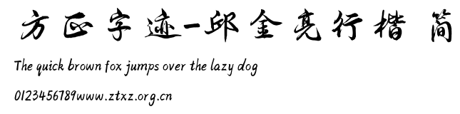 方正字迹-邱金亮行楷 简.TTF是由字体厂商(设计师)方正出品的一款字体.方正字库隶属于北京北大方正电子有限公司(简称方正电子)。方正电子是专业从事中文字库开发的厂商,现拥有各种中、西文以及多民族文种字库数百款。作为享誉全球的方正中文电子出版系统的重要组成部分,方正字库一向以字款丰富,品质精良,适用面广,能迅速满足客户需求而在专业出版、印刷领域中享有盛誉。方正电子一向以推动中文字库技术进步,促进中文印刷字体的发展为己任,每年推出的创新字体都在十款以上。同时,方正电子还积极参与中国国家标准和国际ISO组织相关标准的制订,如GBK、GB18030、ISO/IEC-10646等。方正字库字款丰富、字形美观、性能稳定、适应面广,运行速度快,且存贮容量小。全面支持GB、GBK、GB18030、BIG-5以及JIS、KSC等编码体系,可以提供TrueType,PostScript Type1、Type0、CID等各种通用格式字库。方正字库官网http://www.foundertype.com/index.php/FindFont/index.html?utm_source=zitixiazai