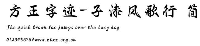 方正字迹-子漆风歌行 简.TTF是由字体厂商(设计师)方正出品的一款字体.方正字库隶属于北京北大方正电子有限公司(简称方正电子)。方正电子是专业从事中文字库开发的厂商,现拥有各种中、西文以及多民族文种字库数百款。作为享誉全球的方正中文电子出版系统的重要组成部分,方正字库一向以字款丰富,品质精良,适用面广,能迅速满足客户需求而在专业出版、印刷领域中享有盛誉。方正电子一向以推动中文字库技术进步,促进中文印刷字体的发展为己任,每年推出的创新字体都在十款以上。同时,方正电子还积极参与中国国家标准和国际ISO组织相关标准的制订,如GBK、GB18030、ISO/IEC-10646等。方正字库字款丰富、字形美观、性能稳定、适应面广,运行速度快,且存贮容量小。全面支持GB、GBK、GB18030、BIG-5以及JIS、KSC等编码体系,可以提供TrueType,PostScript Type1、Type0、CID等各种通用格式字库。方正字库官网http://www.foundertype.com/index.php/FindFont/index.html?utm_source=zitixiazai