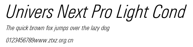 - 字体标识: Linotype GmbH:Univers Next Pro Light Condensed Italic:2010