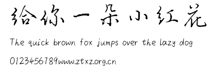 给你一朵小红花.TTF是由字体厂商(设计师)方正出品的一款字体.方正字库隶属于北京北大方正电子有限公司(简称方正电子)。方正电子是专业从事中文字库开发的厂商,现拥有各种中、西文以及多民族文种字库数百款。作为享誉全球的方正中文电子出版系统的重要组成部分,方正字库一向以字款丰富,品质精良,适用面广,能迅速满足客户需求而在专业出版、印刷领域中享有盛誉。方正电子一向以推动中文字库技术进步,促进中文印刷字体的发展为己任,每年推出的创新字体都在十款以上。同时,方正电子还积极参与中国国家标准和国际ISO组织相关标准的制订,如GBK、GB18030、ISO/IEC-10646等。方正字库字款丰富、字形美观、性能稳定、适应面广,运行速度快,且存贮容量小。全面支持GB、GBK、GB18030、BIG-5以及JIS、KSC等编码体系,可以提供TrueType,PostScript Type1、Type0、CID等各种通用格式字库。方正字库官网http://www.foundertype.com/index.php/FindFont/index.html?utm_source=zitixiazai
