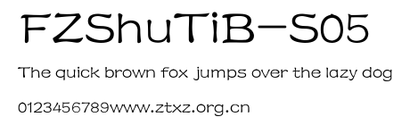 FZShuTiB-S05.TTF是由字体厂商(设计师)方正出品的一款字体.方正字库隶属于北京北大方正电子有限公司(简称方正电子)。方正电子是专业从事中文字库开发的厂商,现拥有各种中、西文以及多民族文种字库数百款。作为享誉全球的方正中文电子出版系统的重要组成部分,方正字库一向以字款丰富,品质精良,适用面广,能迅速满足客户需求而在专业出版、印刷领域中享有盛誉。方正电子一向以推动中文字库技术进步,促进中文印刷字体的发展为己任,每年推出的创新字体都在十款以上。同时,方正电子还积极参与中国国家标准和国际ISO组织相关标准的制订,如GBK、GB18030、ISO/IEC-10646等。方正字库字款丰富、字形美观、性能稳定、适应面广,运行速度快,且存贮容量小。全面支持GB、GBK、GB18030、BIG-5以及JIS、KSC等编码体系,可以提供TrueType,PostScript Type1、Type0、CID等各种通用格式字库。方正字库官网http://www.foundertype.com/index.php/FindFont/index.html?utm_source=zitixiazai