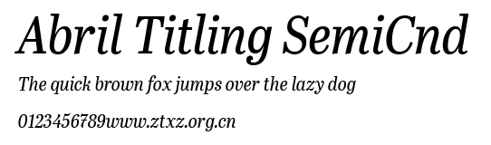 Abril Titling SemiCnd.TTF下载,Abril Titling SemiCnd.TTF下载,TTF字体下载,字体格式:TTF,字体大小:0.16MB。