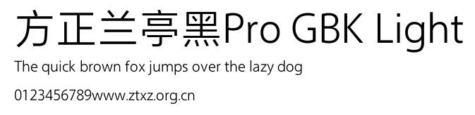 方正兰亭黑Pro GBK Light.TTF是由字体厂商(设计师)方正出品的一款字体.方正字库隶属于北京北大方正电子有限公司(简称方正电子)。方正电子是专业从事中文字库开发的厂商,现拥有各种中、西文以及多民族文种字库数百款。作为享誉全球的方正中文电子出版系统的重要组成部分,方正字库一向以字款丰富,品质精良,适用面广,能迅速满足客户需求而在专业出版、印刷领域中享有盛誉。方正电子一向以推动中文字库技术进步,促进中文印刷字体的发展为己任,每年推出的创新字体都在十款以上。同时,方正电子还积极参与中国国家标准和国际ISO组织相关标准的制订,如GBK、GB18030、ISO/IEC-10646等。方正字库字款丰富、字形美观、性能稳定、适应面广,运行速度快,且存贮容量小。全面支持GB、GBK、GB18030、BIG-5以及JIS、KSC等编码体系,可以提供TrueType,PostScript Type1、Type0、CID等各种通用格式字库。方正字库官网http://www.foundertype.com/index.php/FindFont/index.html?utm_source=zitixiazai