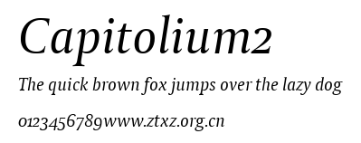 Capitolium2.ttf是由字体厂商(设计师)方正出品的一款字体.方正字库隶属于北京北大方正电子有限公司(简称方正电子)。方正电子是专业从事中文字库开发的厂商,现拥有各种中、西文以及多民族文种字库数百款。作为享誉全球的方正中文电子出版系统的重要组成部分,方正字库一向以字款丰富,品质精良,适用面广,能迅速满足客户需求而在专业出版、印刷领域中享有盛誉。方正电子一向以推动中文字库技术进步,促进中文印刷字体的发展为己任,每年推出的创新字体都在十款以上。同时,方正电子还积极参与中国国家标准和国际ISO组织相关标准的制订,如GBK、GB18030、ISO/IEC-10646等。方正字库字款丰富、字形美观、性能稳定、适应面广,运行速度快,且存贮容量小。全面支持GB、GBK、GB18030、BIG-5以及JIS、KSC等编码体系,可以提供TrueType,PostScript Type1、Type0、CID等各种通用格式字库。方正字库官网http://www.foundertype.com/index.php/FindFont/index.html?utm_source=zitixiazai
