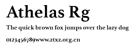 Athelas Rg.ttf是由字体厂商(设计师)方正出品的一款字体.方正字库隶属于北京北大方正电子有限公司(简称方正电子)。方正电子是专业从事中文字库开发的厂商,现拥有各种中、西文以及多民族文种字库数百款。作为享誉全球的方正中文电子出版系统的重要组成部分,方正字库一向以字款丰富,品质精良,适用面广,能迅速满足客户需求而在专业出版、印刷领域中享有盛誉。方正电子一向以推动中文字库技术进步,促进中文印刷字体的发展为己任,每年推出的创新字体都在十款以上。同时,方正电子还积极参与中国国家标准和国际ISO组织相关标准的制订,如GBK、GB18030、ISO/IEC-10646等。方正字库字款丰富、字形美观、性能稳定、适应面广,运行速度快,且存贮容量小。全面支持GB、GBK、GB18030、BIG-5以及JIS、KSC等编码体系,可以提供TrueType,PostScript Type1、Type0、CID等各种通用格式字库。方正字库官网http://www.foundertype.com/index.php/FindFont/index.html?utm_source=zitixiazai
