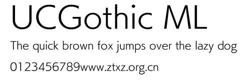 UCGothic ML.ttf是由字体厂商(设计师)方正出品的一款字体.方正字库隶属于北京北大方正电子有限公司(简称方正电子)。方正电子是专业从事中文字库开发的厂商,现拥有各种中、西文以及多民族文种字库数百款。作为享誉全球的方正中文电子出版系统的重要组成部分,方正字库一向以字款丰富,品质精良,适用面广,能迅速满足客户需求而在专业出版、印刷领域中享有盛誉。方正电子一向以推动中文字库技术进步,促进中文印刷字体的发展为己任,每年推出的创新字体都在十款以上。同时,方正电子还积极参与中国国家标准和国际ISO组织相关标准的制订,如GBK、GB18030、ISO/IEC-10646等。方正字库字款丰富、字形美观、性能稳定、适应面广,运行速度快,且存贮容量小。全面支持GB、GBK、GB18030、BIG-5以及JIS、KSC等编码体系,可以提供TrueType,PostScript Type1、Type0、CID等各种通用格式字库。方正字库官网http://www.foundertype.com/index.php/FindFont/index.html?utm_source=zitixiazai