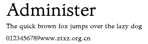 Administer.ttf是由字体厂商(设计师)方正出品的一款字体.方正字库隶属于北京北大方正电子有限公司(简称方正电子)。方正电子是专业从事中文字库开发的厂商,现拥有各种中、西文以及多民族文种字库数百款。作为享誉全球的方正中文电子出版系统的重要组成部分,方正字库一向以字款丰富,品质精良,适用面广,能迅速满足客户需求而在专业出版、印刷领域中享有盛誉。方正电子一向以推动中文字库技术进步,促进中文印刷字体的发展为己任,每年推出的创新字体都在十款以上。同时,方正电子还积极参与中国国家标准和国际ISO组织相关标准的制订,如GBK、GB18030、ISO/IEC-10646等。方正字库字款丰富、字形美观、性能稳定、适应面广,运行速度快,且存贮容量小。全面支持GB、GBK、GB18030、BIG-5以及JIS、KSC等编码体系,可以提供TrueType,PostScript Type1、Type0、CID等各种通用格式字库。方正字库官网http://www.foundertype.com/index.php/FindFont/index.html?utm_source=zitixiazai
