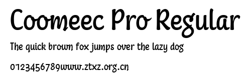 Coomeec Pro Regular.ttf是由字体厂商(设计师)方正出品的一款字体.方正字库隶属于北京北大方正电子有限公司(简称方正电子)。方正电子是专业从事中文字库开发的厂商,现拥有各种中、西文以及多民族文种字库数百款。作为享誉全球的方正中文电子出版系统的重要组成部分,方正字库一向以字款丰富,品质精良,适用面广,能迅速满足客户需求而在专业出版、印刷领域中享有盛誉。方正电子一向以推动中文字库技术进步,促进中文印刷字体的发展为己任,每年推出的创新字体都在十款以上。同时,方正电子还积极参与中国国家标准和国际ISO组织相关标准的制订,如GBK、GB18030、ISO/IEC-10646等。方正字库字款丰富、字形美观、性能稳定、适应面广,运行速度快,且存贮容量小。全面支持GB、GBK、GB18030、BIG-5以及JIS、KSC等编码体系,可以提供TrueType,PostScript Type1、Type0、CID等各种通用格式字库。方正字库官网http://www.foundertype.com/index.php/FindFont/index.html?utm_source=zitixiazai