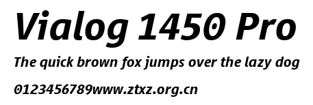 Vialog 1450 Pro.ttf是由字体厂商(设计师)方正出品的一款字体.方正字库隶属于北京北大方正电子有限公司(简称方正电子)。方正电子是专业从事中文字库开发的厂商,现拥有各种中、西文以及多民族文种字库数百款。作为享誉全球的方正中文电子出版系统的重要组成部分,方正字库一向以字款丰富,品质精良,适用面广,能迅速满足客户需求而在专业出版、印刷领域中享有盛誉。方正电子一向以推动中文字库技术进步,促进中文印刷字体的发展为己任,每年推出的创新字体都在十款以上。同时,方正电子还积极参与中国国家标准和国际ISO组织相关标准的制订,如GBK、GB18030、ISO/IEC-10646等。方正字库字款丰富、字形美观、性能稳定、适应面广,运行速度快,且存贮容量小。全面支持GB、GBK、GB18030、BIG-5以及JIS、KSC等编码体系,可以提供TrueType,PostScript Type1、Type0、CID等各种通用格式字库。方正字库官网http://www.foundertype.com/index.php/FindFont/index.html?utm_source=zitixiazai