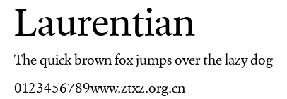 Laurentian.ttf是由字体厂商(设计师)方正出品的一款字体.方正字库隶属于北京北大方正电子有限公司(简称方正电子)。方正电子是专业从事中文字库开发的厂商,现拥有各种中、西文以及多民族文种字库数百款。作为享誉全球的方正中文电子出版系统的重要组成部分,方正字库一向以字款丰富,品质精良,适用面广,能迅速满足客户需求而在专业出版、印刷领域中享有盛誉。方正电子一向以推动中文字库技术进步,促进中文印刷字体的发展为己任,每年推出的创新字体都在十款以上。同时,方正电子还积极参与中国国家标准和国际ISO组织相关标准的制订,如GBK、GB18030、ISO/IEC-10646等。方正字库字款丰富、字形美观、性能稳定、适应面广,运行速度快,且存贮容量小。全面支持GB、GBK、GB18030、BIG-5以及JIS、KSC等编码体系,可以提供TrueType,PostScript Type1、Type0、CID等各种通用格式字库。方正字库官网http://www.foundertype.com/index.php/FindFont/index.html?utm_source=zitixiazai