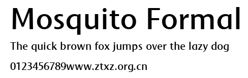 Mosquito Formal.ttf是由字体厂商(设计师)方正出品的一款字体.方正字库隶属于北京北大方正电子有限公司(简称方正电子)。方正电子是专业从事中文字库开发的厂商,现拥有各种中、西文以及多民族文种字库数百款。作为享誉全球的方正中文电子出版系统的重要组成部分,方正字库一向以字款丰富,品质精良,适用面广,能迅速满足客户需求而在专业出版、印刷领域中享有盛誉。方正电子一向以推动中文字库技术进步,促进中文印刷字体的发展为己任,每年推出的创新字体都在十款以上。同时,方正电子还积极参与中国国家标准和国际ISO组织相关标准的制订,如GBK、GB18030、ISO/IEC-10646等。方正字库字款丰富、字形美观、性能稳定、适应面广,运行速度快,且存贮容量小。全面支持GB、GBK、GB18030、BIG-5以及JIS、KSC等编码体系,可以提供TrueType,PostScript Type1、Type0、CID等各种通用格式字库。方正字库官网http://www.foundertype.com/index.php/FindFont/index.html?utm_source=zitixiazai