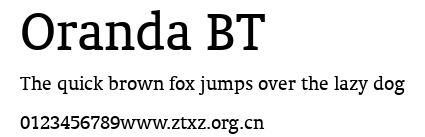 Oranda BT.ttf是由字体厂商(设计师)方正出品的一款字体.方正字库隶属于北京北大方正电子有限公司(简称方正电子)。方正电子是专业从事中文字库开发的厂商,现拥有各种中、西文以及多民族文种字库数百款。作为享誉全球的方正中文电子出版系统的重要组成部分,方正字库一向以字款丰富,品质精良,适用面广,能迅速满足客户需求而在专业出版、印刷领域中享有盛誉。方正电子一向以推动中文字库技术进步,促进中文印刷字体的发展为己任,每年推出的创新字体都在十款以上。同时,方正电子还积极参与中国国家标准和国际ISO组织相关标准的制订,如GBK、GB18030、ISO/IEC-10646等。方正字库字款丰富、字形美观、性能稳定、适应面广,运行速度快,且存贮容量小。全面支持GB、GBK、GB18030、BIG-5以及JIS、KSC等编码体系,可以提供TrueType,PostScript Type1、Type0、CID等各种通用格式字库。方正字库官网http://www.foundertype.com/index.php/FindFont/index.html?utm_source=zitixiazai