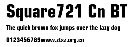 Square721 Cn BT.ttf是由字体厂商(设计师)方正出品的一款字体.方正字库隶属于北京北大方正电子有限公司(简称方正电子)。方正电子是专业从事中文字库开发的厂商,现拥有各种中、西文以及多民族文种字库数百款。作为享誉全球的方正中文电子出版系统的重要组成部分,方正字库一向以字款丰富,品质精良,适用面广,能迅速满足客户需求而在专业出版、印刷领域中享有盛誉。方正电子一向以推动中文字库技术进步,促进中文印刷字体的发展为己任,每年推出的创新字体都在十款以上。同时,方正电子还积极参与中国国家标准和国际ISO组织相关标准的制订,如GBK、GB18030、ISO/IEC-10646等。方正字库字款丰富、字形美观、性能稳定、适应面广,运行速度快,且存贮容量小。全面支持GB、GBK、GB18030、BIG-5以及JIS、KSC等编码体系,可以提供TrueType,PostScript Type1、Type0、CID等各种通用格式字库。方正字库官网http://www.foundertype.com/index.php/FindFont/index.html?utm_source=zitixiazai
