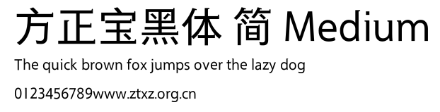 方正宝黑体 简 Medium.ttf是由字体厂商(设计师)方正出品的一款字体.方正字库隶属于北京北大方正电子有限公司(简称方正电子)。方正电子是专业从事中文字库开发的厂商,现拥有各种中、西文以及多民族文种字库数百款。作为享誉全球的方正中文电子出版系统的重要组成部分,方正字库一向以字款丰富,品质精良,适用面广,能迅速满足客户需求而在专业出版、印刷领域中享有盛誉。方正电子一向以推动中文字库技术进步,促进中文印刷字体的发展为己任,每年推出的创新字体都在十款以上。同时,方正电子还积极参与中国国家标准和国际ISO组织相关标准的制订,如GBK、GB18030、ISO/IEC-10646等。方正字库字款丰富、字形美观、性能稳定、适应面广,运行速度快,且存贮容量小。全面支持GB、GBK、GB18030、BIG-5以及JIS、KSC等编码体系,可以提供TrueType,PostScript Type1、Type0、CID等各种通用格式字库。方正字库官网http://www.foundertype.com/index.php/FindFont/index.html?utm_source=zitixiazai