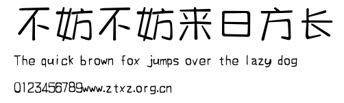 不妨不妨来日方长.ttf是由字体厂商(设计师)方正出品的一款字体.方正字库隶属于北京北大方正电子有限公司(简称方正电子)。方正电子是专业从事中文字库开发的厂商,现拥有各种中、西文以及多民族文种字库数百款。作为享誉全球的方正中文电子出版系统的重要组成部分,方正字库一向以字款丰富,品质精良,适用面广,能迅速满足客户需求而在专业出版、印刷领域中享有盛誉。方正电子一向以推动中文字库技术进步,促进中文印刷字体的发展为己任,每年推出的创新字体都在十款以上。同时,方正电子还积极参与中国国家标准和国际ISO组织相关标准的制订,如GBK、GB18030、ISO/IEC-10646等。方正字库字款丰富、字形美观、性能稳定、适应面广,运行速度快,且存贮容量小。全面支持GB、GBK、GB18030、BIG-5以及JIS、KSC等编码体系,可以提供TrueType,PostScript Type1、Type0、CID等各种通用格式字库。方正字库官网http://www.foundertype.com/index.php/FindFont/index.html?utm_source=zitixiazai