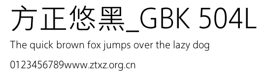 方正悠黑_GBK 504L.ttf是由字体厂商(设计师)方正出品的一款字体.方正字库隶属于北京北大方正电子有限公司(简称方正电子)。方正电子是专业从事中文字库开发的厂商,现拥有各种中、西文以及多民族文种字库数百款。作为享誉全球的方正中文电子出版系统的重要组成部分,方正字库一向以字款丰富,品质精良,适用面广,能迅速满足客户需求而在专业出版、印刷领域中享有盛誉。方正电子一向以推动中文字库技术进步,促进中文印刷字体的发展为己任,每年推出的创新字体都在十款以上。同时,方正电子还积极参与中国国家标准和国际ISO组织相关标准的制订,如GBK、GB18030、ISO/IEC-10646等。方正字库字款丰富、字形美观、性能稳定、适应面广,运行速度快,且存贮容量小。全面支持GB、GBK、GB18030、BIG-5以及JIS、KSC等编码体系,可以提供TrueType,PostScript Type1、Type0、CID等各种通用格式字库。方正字库官网http://www.foundertype.com/index.php/FindFont/index.html?utm_source=zitixiazai