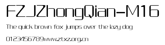 FZJZhongQian-M16.ttf是由字体厂商(设计师)方正出品的一款字体.方正字库隶属于北京北大方正电子有限公司(简称方正电子)。方正电子是专业从事中文字库开发的厂商,现拥有各种中、西文以及多民族文种字库数百款。作为享誉全球的方正中文电子出版系统的重要组成部分,方正字库一向以字款丰富,品质精良,适用面广,能迅速满足客户需求而在专业出版、印刷领域中享有盛誉。方正电子一向以推动中文字库技术进步,促进中文印刷字体的发展为己任,每年推出的创新字体都在十款以上。同时,方正电子还积极参与中国国家标准和国际ISO组织相关标准的制订,如GBK、GB18030、ISO/IEC-10646等。方正字库字款丰富、字形美观、性能稳定、适应面广,运行速度快,且存贮容量小。全面支持GB、GBK、GB18030、BIG-5以及JIS、KSC等编码体系,可以提供TrueType,PostScript Type1、Type0、CID等各种通用格式字库。方正字库官网http://www.foundertype.com/index.php/FindFont/index.html?utm_source=zitixiazai