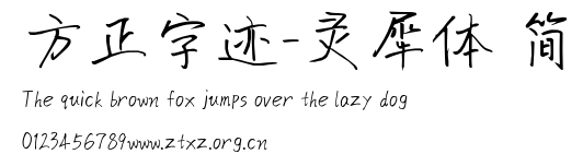 方正字迹-灵犀体 简.ttf是由字体厂商(设计师)方正出品的一款字体.方正字库隶属于北京北大方正电子有限公司(简称方正电子)。方正电子是专业从事中文字库开发的厂商,现拥有各种中、西文以及多民族文种字库数百款。作为享誉全球的方正中文电子出版系统的重要组成部分,方正字库一向以字款丰富,品质精良,适用面广,能迅速满足客户需求而在专业出版、印刷领域中享有盛誉。方正电子一向以推动中文字库技术进步,促进中文印刷字体的发展为己任,每年推出的创新字体都在十款以上。同时,方正电子还积极参与中国国家标准和国际ISO组织相关标准的制订,如GBK、GB18030、ISO/IEC-10646等。方正字库字款丰富、字形美观、性能稳定、适应面广,运行速度快,且存贮容量小。全面支持GB、GBK、GB18030、BIG-5以及JIS、KSC等编码体系,可以提供TrueType,PostScript Type1、Type0、CID等各种通用格式字库。方正字库官网http://www.foundertype.com/index.php/FindFont/index.html?utm_source=zitixiazai