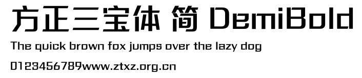 方正三宝体 简 DemiBold.ttf是由字体厂商(设计师)方正出品的一款字体.方正字库隶属于北京北大方正电子有限公司(简称方正电子)。方正电子是专业从事中文字库开发的厂商,现拥有各种中、西文以及多民族文种字库数百款。作为享誉全球的方正中文电子出版系统的重要组成部分,方正字库一向以字款丰富,品质精良,适用面广,能迅速满足客户需求而在专业出版、印刷领域中享有盛誉。方正电子一向以推动中文字库技术进步,促进中文印刷字体的发展为己任,每年推出的创新字体都在十款以上。同时,方正电子还积极参与中国国家标准和国际ISO组织相关标准的制订,如GBK、GB18030、ISO/IEC-10646等。方正字库字款丰富、字形美观、性能稳定、适应面广,运行速度快,且存贮容量小。全面支持GB、GBK、GB18030、BIG-5以及JIS、KSC等编码体系,可以提供TrueType,PostScript Type1、Type0、CID等各种通用格式字库。方正字库官网http://www.foundertype.com/index.php/FindFont/index.html?utm_source=zitixiazai