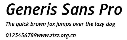 Generis Sans Pro.ttf是由字体厂商(设计师)方正出品的一款字体.方正字库隶属于北京北大方正电子有限公司(简称方正电子)。方正电子是专业从事中文字库开发的厂商,现拥有各种中、西文以及多民族文种字库数百款。作为享誉全球的方正中文电子出版系统的重要组成部分,方正字库一向以字款丰富,品质精良,适用面广,能迅速满足客户需求而在专业出版、印刷领域中享有盛誉。方正电子一向以推动中文字库技术进步,促进中文印刷字体的发展为己任,每年推出的创新字体都在十款以上。同时,方正电子还积极参与中国国家标准和国际ISO组织相关标准的制订,如GBK、GB18030、ISO/IEC-10646等。方正字库字款丰富、字形美观、性能稳定、适应面广,运行速度快,且存贮容量小。全面支持GB、GBK、GB18030、BIG-5以及JIS、KSC等编码体系,可以提供TrueType,PostScript Type1、Type0、CID等各种通用格式字库。方正字库官网http://www.foundertype.com/index.php/FindFont/index.html?utm_source=zitixiazai
