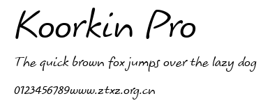 Koorkin Pro.ttf是由字体厂商(设计师)方正出品的一款字体.方正字库隶属于北京北大方正电子有限公司(简称方正电子)。方正电子是专业从事中文字库开发的厂商,现拥有各种中、西文以及多民族文种字库数百款。作为享誉全球的方正中文电子出版系统的重要组成部分,方正字库一向以字款丰富,品质精良,适用面广,能迅速满足客户需求而在专业出版、印刷领域中享有盛誉。方正电子一向以推动中文字库技术进步,促进中文印刷字体的发展为己任,每年推出的创新字体都在十款以上。同时,方正电子还积极参与中国国家标准和国际ISO组织相关标准的制订,如GBK、GB18030、ISO/IEC-10646等。方正字库字款丰富、字形美观、性能稳定、适应面广,运行速度快,且存贮容量小。全面支持GB、GBK、GB18030、BIG-5以及JIS、KSC等编码体系,可以提供TrueType,PostScript Type1、Type0、CID等各种通用格式字库。方正字库官网http://www.foundertype.com/index.php/FindFont/index.html?utm_source=zitixiazai