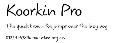Koorkin Pro.ttf是由字体厂商(设计师)方正出品的一款字体.方正字库隶属于北京北大方正电子有限公司(简称方正电子)。方正电子是专业从事中文字库开发的厂商,现拥有各种中、西文以及多民族文种字库数百款。作为享誉全球的方正中文电子出版系统的重要组成部分,方正字库一向以字款丰富,品质精良,适用面广,能迅速满足客户需求而在专业出版、印刷领域中享有盛誉。方正电子一向以推动中文字库技术进步,促进中文印刷字体的发展为己任,每年推出的创新字体都在十款以上。同时,方正电子还积极参与中国国家标准和国际ISO组织相关标准的制订,如GBK、GB18030、ISO/IEC-10646等。方正字库字款丰富、字形美观、性能稳定、适应面广,运行速度快,且存贮容量小。全面支持GB、GBK、GB18030、BIG-5以及JIS、KSC等编码体系,可以提供TrueType,PostScript Type1、Type0、CID等各种通用格式字库。方正字库官网http://www.foundertype.com/index.php/FindFont/index.html?utm_source=zitixiazai
