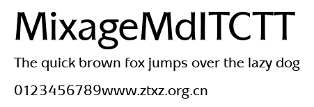 MixageMdITCTT.ttf是由字体厂商(设计师)方正出品的一款字体.方正字库隶属于北京北大方正电子有限公司(简称方正电子)。方正电子是专业从事中文字库开发的厂商,现拥有各种中、西文以及多民族文种字库数百款。作为享誉全球的方正中文电子出版系统的重要组成部分,方正字库一向以字款丰富,品质精良,适用面广,能迅速满足客户需求而在专业出版、印刷领域中享有盛誉。方正电子一向以推动中文字库技术进步,促进中文印刷字体的发展为己任,每年推出的创新字体都在十款以上。同时,方正电子还积极参与中国国家标准和国际ISO组织相关标准的制订,如GBK、GB18030、ISO/IEC-10646等。方正字库字款丰富、字形美观、性能稳定、适应面广,运行速度快,且存贮容量小。全面支持GB、GBK、GB18030、BIG-5以及JIS、KSC等编码体系,可以提供TrueType,PostScript Type1、Type0、CID等各种通用格式字库。方正字库官网http://www.foundertype.com/index.php/FindFont/index.html?utm_source=zitixiazai