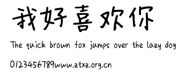 我好喜欢你.ttf是由字体厂商(设计师)方正出品的一款字体.方正字库隶属于北京北大方正电子有限公司(简称方正电子)。方正电子是专业从事中文字库开发的厂商,现拥有各种中、西文以及多民族文种字库数百款。作为享誉全球的方正中文电子出版系统的重要组成部分,方正字库一向以字款丰富,品质精良,适用面广,能迅速满足客户需求而在专业出版、印刷领域中享有盛誉。方正电子一向以推动中文字库技术进步,促进中文印刷字体的发展为己任,每年推出的创新字体都在十款以上。同时,方正电子还积极参与中国国家标准和国际ISO组织相关标准的制订,如GBK、GB18030、ISO/IEC-10646等。方正字库字款丰富、字形美观、性能稳定、适应面广,运行速度快,且存贮容量小。全面支持GB、GBK、GB18030、BIG-5以及JIS、KSC等编码体系,可以提供TrueType,PostScript Type1、Type0、CID等各种通用格式字库。方正字库官网http://www.foundertype.com/index.php/FindFont/index.html?utm_source=zitixiazai