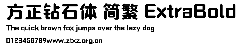 方正钻石体 简繁 ExtraBold.ttf是由字体厂商(设计师)方正出品的一款字体.方正字库隶属于北京北大方正电子有限公司(简称方正电子)。方正电子是专业从事中文字库开发的厂商,现拥有各种中、西文以及多民族文种字库数百款。作为享誉全球的方正中文电子出版系统的重要组成部分,方正字库一向以字款丰富,品质精良,适用面广,能迅速满足客户需求而在专业出版、印刷领域中享有盛誉。方正电子一向以推动中文字库技术进步,促进中文印刷字体的发展为己任,每年推出的创新字体都在十款以上。同时,方正电子还积极参与中国国家标准和国际ISO组织相关标准的制订,如GBK、GB18030、ISO/IEC-10646等。方正字库字款丰富、字形美观、性能稳定、适应面广,运行速度快,且存贮容量小。全面支持GB、GBK、GB18030、BIG-5以及JIS、KSC等编码体系,可以提供TrueType,PostScript Type1、Type0、CID等各种通用格式字库。方正字库官网http://www.foundertype.com/index.php/FindFont/index.html?utm_source=zitixiazai