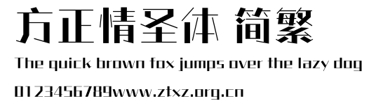 方正情圣体 简繁.ttf是由字体厂商(设计师)方正出品的一款字体.方正字库隶属于北京北大方正电子有限公司(简称方正电子)。方正电子是专业从事中文字库开发的厂商,现拥有各种中、西文以及多民族文种字库数百款。作为享誉全球的方正中文电子出版系统的重要组成部分,方正字库一向以字款丰富,品质精良,适用面广,能迅速满足客户需求而在专业出版、印刷领域中享有盛誉。方正电子一向以推动中文字库技术进步,促进中文印刷字体的发展为己任,每年推出的创新字体都在十款以上。同时,方正电子还积极参与中国国家标准和国际ISO组织相关标准的制订,如GBK、GB18030、ISO/IEC-10646等。方正字库字款丰富、字形美观、性能稳定、适应面广,运行速度快,且存贮容量小。全面支持GB、GBK、GB18030、BIG-5以及JIS、KSC等编码体系,可以提供TrueType,PostScript Type1、Type0、CID等各种通用格式字库。方正字库官网http://www.foundertype.com/index.php/FindFont/index.html?utm_source=zitixiazai