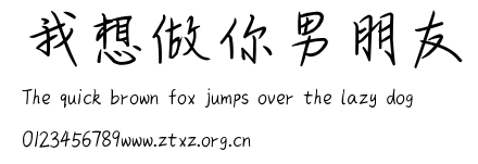 我想做你男朋友.ttf是由字体厂商(设计师)方正出品的一款字体.方正字库隶属于北京北大方正电子有限公司(简称方正电子)。方正电子是专业从事中文字库开发的厂商,现拥有各种中、西文以及多民族文种字库数百款。作为享誉全球的方正中文电子出版系统的重要组成部分,方正字库一向以字款丰富,品质精良,适用面广,能迅速满足客户需求而在专业出版、印刷领域中享有盛誉。方正电子一向以推动中文字库技术进步,促进中文印刷字体的发展为己任,每年推出的创新字体都在十款以上。同时,方正电子还积极参与中国国家标准和国际ISO组织相关标准的制订,如GBK、GB18030、ISO/IEC-10646等。方正字库字款丰富、字形美观、性能稳定、适应面广,运行速度快,且存贮容量小。全面支持GB、GBK、GB18030、BIG-5以及JIS、KSC等编码体系,可以提供TrueType,PostScript Type1、Type0、CID等各种通用格式字库。方正字库官网http://www.foundertype.com/index.php/FindFont/index.html?utm_source=zitixiazai