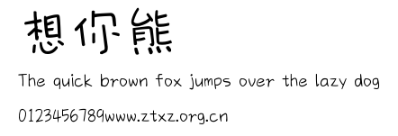 想你熊.ttf是由字体厂商(设计师)方正出品的一款字体.方正字库隶属于北京北大方正电子有限公司(简称方正电子)。方正电子是专业从事中文字库开发的厂商,现拥有各种中、西文以及多民族文种字库数百款。作为享誉全球的方正中文电子出版系统的重要组成部分,方正字库一向以字款丰富,品质精良,适用面广,能迅速满足客户需求而在专业出版、印刷领域中享有盛誉。方正电子一向以推动中文字库技术进步,促进中文印刷字体的发展为己任,每年推出的创新字体都在十款以上。同时,方正电子还积极参与中国国家标准和国际ISO组织相关标准的制订,如GBK、GB18030、ISO/IEC-10646等。方正字库字款丰富、字形美观、性能稳定、适应面广,运行速度快,且存贮容量小。全面支持GB、GBK、GB18030、BIG-5以及JIS、KSC等编码体系,可以提供TrueType,PostScript Type1、Type0、CID等各种通用格式字库。方正字库官网http://www.foundertype.com/index.php/FindFont/index.html?utm_source=zitixiazai