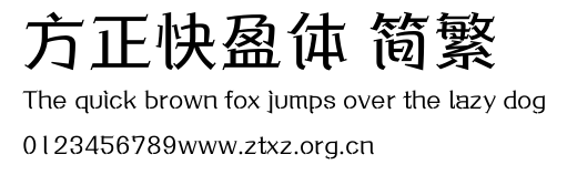 方正快盈体 简繁.ttf是由字体厂商(设计师)方正出品的一款字体.方正字库隶属于北京北大方正电子有限公司(简称方正电子)。方正电子是专业从事中文字库开发的厂商,现拥有各种中、西文以及多民族文种字库数百款。作为享誉全球的方正中文电子出版系统的重要组成部分,方正字库一向以字款丰富,品质精良,适用面广,能迅速满足客户需求而在专业出版、印刷领域中享有盛誉。方正电子一向以推动中文字库技术进步,促进中文印刷字体的发展为己任,每年推出的创新字体都在十款以上。同时,方正电子还积极参与中国国家标准和国际ISO组织相关标准的制订,如GBK、GB18030、ISO/IEC-10646等。方正字库字款丰富、字形美观、性能稳定、适应面广,运行速度快,且存贮容量小。全面支持GB、GBK、GB18030、BIG-5以及JIS、KSC等编码体系,可以提供TrueType,PostScript Type1、Type0、CID等各种通用格式字库。方正字库官网http://www.foundertype.com/index.php/FindFont/index.html?utm_source=zitixiazai