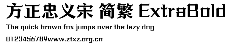 方正忠义宋 简繁 ExtraBold.ttf是由字体厂商(设计师)方正出品的一款字体.方正字库隶属于北京北大方正电子有限公司(简称方正电子)。方正电子是专业从事中文字库开发的厂商,现拥有各种中、西文以及多民族文种字库数百款。作为享誉全球的方正中文电子出版系统的重要组成部分,方正字库一向以字款丰富,品质精良,适用面广,能迅速满足客户需求而在专业出版、印刷领域中享有盛誉。方正电子一向以推动中文字库技术进步,促进中文印刷字体的发展为己任,每年推出的创新字体都在十款以上。同时,方正电子还积极参与中国国家标准和国际ISO组织相关标准的制订,如GBK、GB18030、ISO/IEC-10646等。方正字库字款丰富、字形美观、性能稳定、适应面广,运行速度快,且存贮容量小。全面支持GB、GBK、GB18030、BIG-5以及JIS、KSC等编码体系,可以提供TrueType,PostScript Type1、Type0、CID等各种通用格式字库。方正字库官网http://www.foundertype.com/index.php/FindFont/index.html?utm_source=zitixiazai