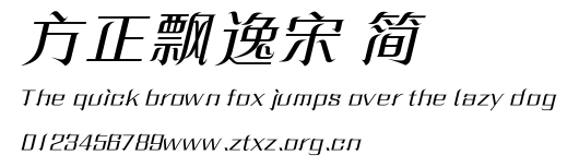 方正飘逸宋 简.ttf是由字体厂商(设计师)方正出品的一款字体.方正字库隶属于北京北大方正电子有限公司(简称方正电子)。方正电子是专业从事中文字库开发的厂商,现拥有各种中、西文以及多民族文种字库数百款。作为享誉全球的方正中文电子出版系统的重要组成部分,方正字库一向以字款丰富,品质精良,适用面广,能迅速满足客户需求而在专业出版、印刷领域中享有盛誉。方正电子一向以推动中文字库技术进步,促进中文印刷字体的发展为己任,每年推出的创新字体都在十款以上。同时,方正电子还积极参与中国国家标准和国际ISO组织相关标准的制订,如GBK、GB18030、ISO/IEC-10646等。方正字库字款丰富、字形美观、性能稳定、适应面广,运行速度快,且存贮容量小。全面支持GB、GBK、GB18030、BIG-5以及JIS、KSC等编码体系,可以提供TrueType,PostScript Type1、Type0、CID等各种通用格式字库。方正字库官网http://www.foundertype.com/index.php/FindFont/index.html?utm_source=zitixiazai