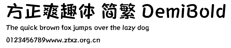 方正爽趣体 简繁 DemiBold.ttf是由字体厂商(设计师)方正出品的一款字体.方正字库隶属于北京北大方正电子有限公司(简称方正电子)。方正电子是专业从事中文字库开发的厂商,现拥有各种中、西文以及多民族文种字库数百款。作为享誉全球的方正中文电子出版系统的重要组成部分,方正字库一向以字款丰富,品质精良,适用面广,能迅速满足客户需求而在专业出版、印刷领域中享有盛誉。方正电子一向以推动中文字库技术进步,促进中文印刷字体的发展为己任,每年推出的创新字体都在十款以上。同时,方正电子还积极参与中国国家标准和国际ISO组织相关标准的制订,如GBK、GB18030、ISO/IEC-10646等。方正字库字款丰富、字形美观、性能稳定、适应面广,运行速度快,且存贮容量小。全面支持GB、GBK、GB18030、BIG-5以及JIS、KSC等编码体系,可以提供TrueType,PostScript Type1、Type0、CID等各种通用格式字库。方正字库官网http://www.foundertype.com/index.php/FindFont/index.html?utm_source=zitixiazai