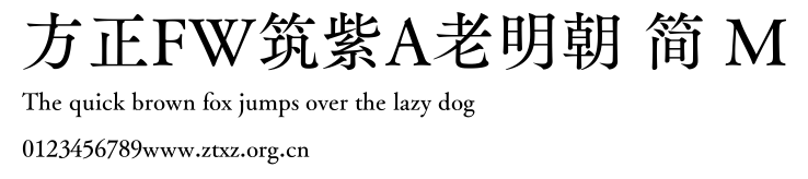 方正FW筑紫A老明朝 简 M.ttf是由字体厂商(设计师)方正出品的一款字体.方正字库隶属于北京北大方正电子有限公司(简称方正电子)。方正电子是专业从事中文字库开发的厂商,现拥有各种中、西文以及多民族文种字库数百款。作为享誉全球的方正中文电子出版系统的重要组成部分,方正字库一向以字款丰富,品质精良,适用面广,能迅速满足客户需求而在专业出版、印刷领域中享有盛誉。方正电子一向以推动中文字库技术进步,促进中文印刷字体的发展为己任,每年推出的创新字体都在十款以上。同时,方正电子还积极参与中国国家标准和国际ISO组织相关标准的制订,如GBK、GB18030、ISO/IEC-10646等。方正字库字款丰富、字形美观、性能稳定、适应面广,运行速度快,且存贮容量小。全面支持GB、GBK、GB18030、BIG-5以及JIS、KSC等编码体系,可以提供TrueType,PostScript Type1、Type0、CID等各种通用格式字库。方正字库官网http://www.foundertype.com/index.php/FindFont/index.html?utm_source=zitixiazai