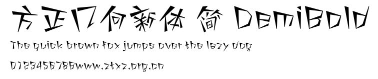 方正几何新体 简 DemiBold.ttf是由字体厂商(设计师)方正出品的一款字体.方正字库隶属于北京北大方正电子有限公司(简称方正电子)。方正电子是专业从事中文字库开发的厂商,现拥有各种中、西文以及多民族文种字库数百款。作为享誉全球的方正中文电子出版系统的重要组成部分,方正字库一向以字款丰富,品质精良,适用面广,能迅速满足客户需求而在专业出版、印刷领域中享有盛誉。方正电子一向以推动中文字库技术进步,促进中文印刷字体的发展为己任,每年推出的创新字体都在十款以上。同时,方正电子还积极参与中国国家标准和国际ISO组织相关标准的制订,如GBK、GB18030、ISO/IEC-10646等。方正字库字款丰富、字形美观、性能稳定、适应面广,运行速度快,且存贮容量小。全面支持GB、GBK、GB18030、BIG-5以及JIS、KSC等编码体系,可以提供TrueType,PostScript Type1、Type0、CID等各种通用格式字库。方正字库官网http://www.foundertype.com/index.php/FindFont/index.html?utm_source=zitixiazai