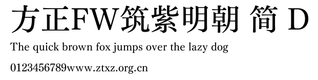 方正FW筑紫明朝 简 D.ttf是由字体厂商(设计师)方正出品的一款字体.方正字库隶属于北京北大方正电子有限公司(简称方正电子)。方正电子是专业从事中文字库开发的厂商,现拥有各种中、西文以及多民族文种字库数百款。作为享誉全球的方正中文电子出版系统的重要组成部分,方正字库一向以字款丰富,品质精良,适用面广,能迅速满足客户需求而在专业出版、印刷领域中享有盛誉。方正电子一向以推动中文字库技术进步,促进中文印刷字体的发展为己任,每年推出的创新字体都在十款以上。同时,方正电子还积极参与中国国家标准和国际ISO组织相关标准的制订,如GBK、GB18030、ISO/IEC-10646等。方正字库字款丰富、字形美观、性能稳定、适应面广,运行速度快,且存贮容量小。全面支持GB、GBK、GB18030、BIG-5以及JIS、KSC等编码体系,可以提供TrueType,PostScript Type1、Type0、CID等各种通用格式字库。方正字库官网http://www.foundertype.com/index.php/FindFont/index.html?utm_source=zitixiazai