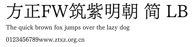 方正FW筑紫明朝 简 LB.ttf是由字体厂商(设计师)方正出品的一款字体.方正字库隶属于北京北大方正电子有限公司(简称方正电子)。方正电子是专业从事中文字库开发的厂商,现拥有各种中、西文以及多民族文种字库数百款。作为享誉全球的方正中文电子出版系统的重要组成部分,方正字库一向以字款丰富,品质精良,适用面广,能迅速满足客户需求而在专业出版、印刷领域中享有盛誉。方正电子一向以推动中文字库技术进步,促进中文印刷字体的发展为己任,每年推出的创新字体都在十款以上。同时,方正电子还积极参与中国国家标准和国际ISO组织相关标准的制订,如GBK、GB18030、ISO/IEC-10646等。方正字库字款丰富、字形美观、性能稳定、适应面广,运行速度快,且存贮容量小。全面支持GB、GBK、GB18030、BIG-5以及JIS、KSC等编码体系,可以提供TrueType,PostScript Type1、Type0、CID等各种通用格式字库。方正字库官网http://www.foundertype.com/index.php/FindFont/index.html?utm_source=zitixiazai