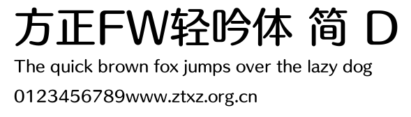 方正FW轻吟体 简 D.ttf是由字体厂商(设计师)方正出品的一款字体.方正字库隶属于北京北大方正电子有限公司(简称方正电子)。方正电子是专业从事中文字库开发的厂商,现拥有各种中、西文以及多民族文种字库数百款。作为享誉全球的方正中文电子出版系统的重要组成部分,方正字库一向以字款丰富,品质精良,适用面广,能迅速满足客户需求而在专业出版、印刷领域中享有盛誉。方正电子一向以推动中文字库技术进步,促进中文印刷字体的发展为己任,每年推出的创新字体都在十款以上。同时,方正电子还积极参与中国国家标准和国际ISO组织相关标准的制订,如GBK、GB18030、ISO/IEC-10646等。方正字库字款丰富、字形美观、性能稳定、适应面广,运行速度快,且存贮容量小。全面支持GB、GBK、GB18030、BIG-5以及JIS、KSC等编码体系,可以提供TrueType,PostScript Type1、Type0、CID等各种通用格式字库。方正字库官网http://www.foundertype.com/index.php/FindFont/index.html?utm_source=zitixiazai