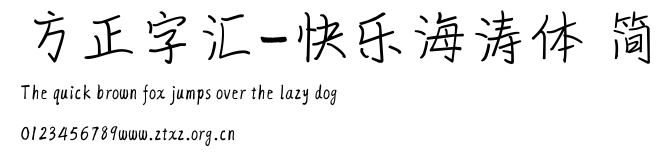 方正字汇-快乐海涛体 简.ttf是由字体厂商(设计师)方正出品的一款字体.方正字库隶属于北京北大方正电子有限公司(简称方正电子)。方正电子是专业从事中文字库开发的厂商,现拥有各种中、西文以及多民族文种字库数百款。作为享誉全球的方正中文电子出版系统的重要组成部分,方正字库一向以字款丰富,品质精良,适用面广,能迅速满足客户需求而在专业出版、印刷领域中享有盛誉。方正电子一向以推动中文字库技术进步,促进中文印刷字体的发展为己任,每年推出的创新字体都在十款以上。同时,方正电子还积极参与中国国家标准和国际ISO组织相关标准的制订,如GBK、GB18030、ISO/IEC-10646等。方正字库字款丰富、字形美观、性能稳定、适应面广,运行速度快,且存贮容量小。全面支持GB、GBK、GB18030、BIG-5以及JIS、KSC等编码体系,可以提供TrueType,PostScript Type1、Type0、CID等各种通用格式字库。方正字库官网http://www.foundertype.com/index.php/FindFont/index.html?utm_source=zitixiazai