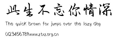 此生不忘你情深.ttf是由字体厂商(设计师)方正出品的一款字体.方正字库隶属于北京北大方正电子有限公司(简称方正电子)。方正电子是专业从事中文字库开发的厂商,现拥有各种中、西文以及多民族文种字库数百款。作为享誉全球的方正中文电子出版系统的重要组成部分,方正字库一向以字款丰富,品质精良,适用面广,能迅速满足客户需求而在专业出版、印刷领域中享有盛誉。方正电子一向以推动中文字库技术进步,促进中文印刷字体的发展为己任,每年推出的创新字体都在十款以上。同时,方正电子还积极参与中国国家标准和国际ISO组织相关标准的制订,如GBK、GB18030、ISO/IEC-10646等。方正字库字款丰富、字形美观、性能稳定、适应面广,运行速度快,且存贮容量小。全面支持GB、GBK、GB18030、BIG-5以及JIS、KSC等编码体系,可以提供TrueType,PostScript Type1、Type0、CID等各种通用格式字库。方正字库官网http://www.foundertype.com/index.php/FindFont/index.html?utm_source=zitixiazai