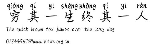 穷其一生终其一人.ttf是由字体厂商(设计师)方正出品的一款字体.方正字库隶属于北京北大方正电子有限公司(简称方正电子)。方正电子是专业从事中文字库开发的厂商,现拥有各种中、西文以及多民族文种字库数百款。作为享誉全球的方正中文电子出版系统的重要组成部分,方正字库一向以字款丰富,品质精良,适用面广,能迅速满足客户需求而在专业出版、印刷领域中享有盛誉。方正电子一向以推动中文字库技术进步,促进中文印刷字体的发展为己任,每年推出的创新字体都在十款以上。同时,方正电子还积极参与中国国家标准和国际ISO组织相关标准的制订,如GBK、GB18030、ISO/IEC-10646等。方正字库字款丰富、字形美观、性能稳定、适应面广,运行速度快,且存贮容量小。全面支持GB、GBK、GB18030、BIG-5以及JIS、KSC等编码体系,可以提供TrueType,PostScript Type1、Type0、CID等各种通用格式字库。方正字库官网http://www.foundertype.com/index.php/FindFont/index.html?utm_source=zitixiazai