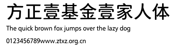 方正壹基金壹家人体.ttf是由字体厂商(设计师)方正出品的一款字体.方正字库隶属于北京北大方正电子有限公司(简称方正电子)。方正电子是专业从事中文字库开发的厂商,现拥有各种中、西文以及多民族文种字库数百款。作为享誉全球的方正中文电子出版系统的重要组成部分,方正字库一向以字款丰富,品质精良,适用面广,能迅速满足客户需求而在专业出版、印刷领域中享有盛誉。方正电子一向以推动中文字库技术进步,促进中文印刷字体的发展为己任,每年推出的创新字体都在十款以上。同时,方正电子还积极参与中国国家标准和国际ISO组织相关标准的制订,如GBK、GB18030、ISO/IEC-10646等。方正字库字款丰富、字形美观、性能稳定、适应面广,运行速度快,且存贮容量小。全面支持GB、GBK、GB18030、BIG-5以及JIS、KSC等编码体系,可以提供TrueType,PostScript Type1、Type0、CID等各种通用格式字库。方正字库官网http://www.foundertype.com/index.php/FindFont/index.html?utm_source=zitixiazai