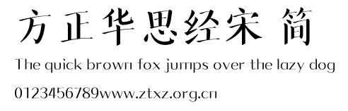 方正华思经宋 简.ttf是由字体厂商(设计师)方正出品的一款字体.方正字库隶属于北京北大方正电子有限公司(简称方正电子)。方正电子是专业从事中文字库开发的厂商,现拥有各种中、西文以及多民族文种字库数百款。作为享誉全球的方正中文电子出版系统的重要组成部分,方正字库一向以字款丰富,品质精良,适用面广,能迅速满足客户需求而在专业出版、印刷领域中享有盛誉。方正电子一向以推动中文字库技术进步,促进中文印刷字体的发展为己任,每年推出的创新字体都在十款以上。同时,方正电子还积极参与中国国家标准和国际ISO组织相关标准的制订,如GBK、GB18030、ISO/IEC-10646等。方正字库字款丰富、字形美观、性能稳定、适应面广,运行速度快,且存贮容量小。全面支持GB、GBK、GB18030、BIG-5以及JIS、KSC等编码体系,可以提供TrueType,PostScript Type1、Type0、CID等各种通用格式字库。方正字库官网http://www.foundertype.com/index.php/FindFont/index.html?utm_source=zitixiazai