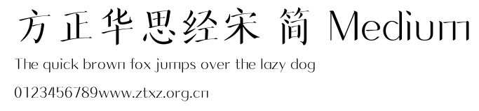 方正华思经宋 简 Medium.ttf是由字体厂商(设计师)方正出品的一款字体.方正字库隶属于北京北大方正电子有限公司(简称方正电子)。方正电子是专业从事中文字库开发的厂商,现拥有各种中、西文以及多民族文种字库数百款。作为享誉全球的方正中文电子出版系统的重要组成部分,方正字库一向以字款丰富,品质精良,适用面广,能迅速满足客户需求而在专业出版、印刷领域中享有盛誉。方正电子一向以推动中文字库技术进步,促进中文印刷字体的发展为己任,每年推出的创新字体都在十款以上。同时,方正电子还积极参与中国国家标准和国际ISO组织相关标准的制订,如GBK、GB18030、ISO/IEC-10646等。方正字库字款丰富、字形美观、性能稳定、适应面广,运行速度快,且存贮容量小。全面支持GB、GBK、GB18030、BIG-5以及JIS、KSC等编码体系,可以提供TrueType,PostScript Type1、Type0、CID等各种通用格式字库。方正字库官网http://www.foundertype.com/index.php/FindFont/index.html?utm_source=zitixiazai